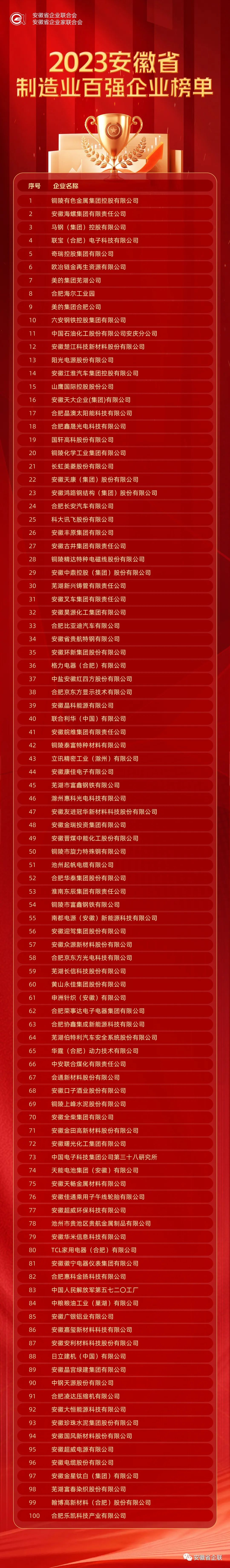 附件:2023安徽省百?gòu)?qiáng)企業(yè)、制造業(yè)、服務(wù)業(yè)百?gòu)?qiáng)企業(yè)名單