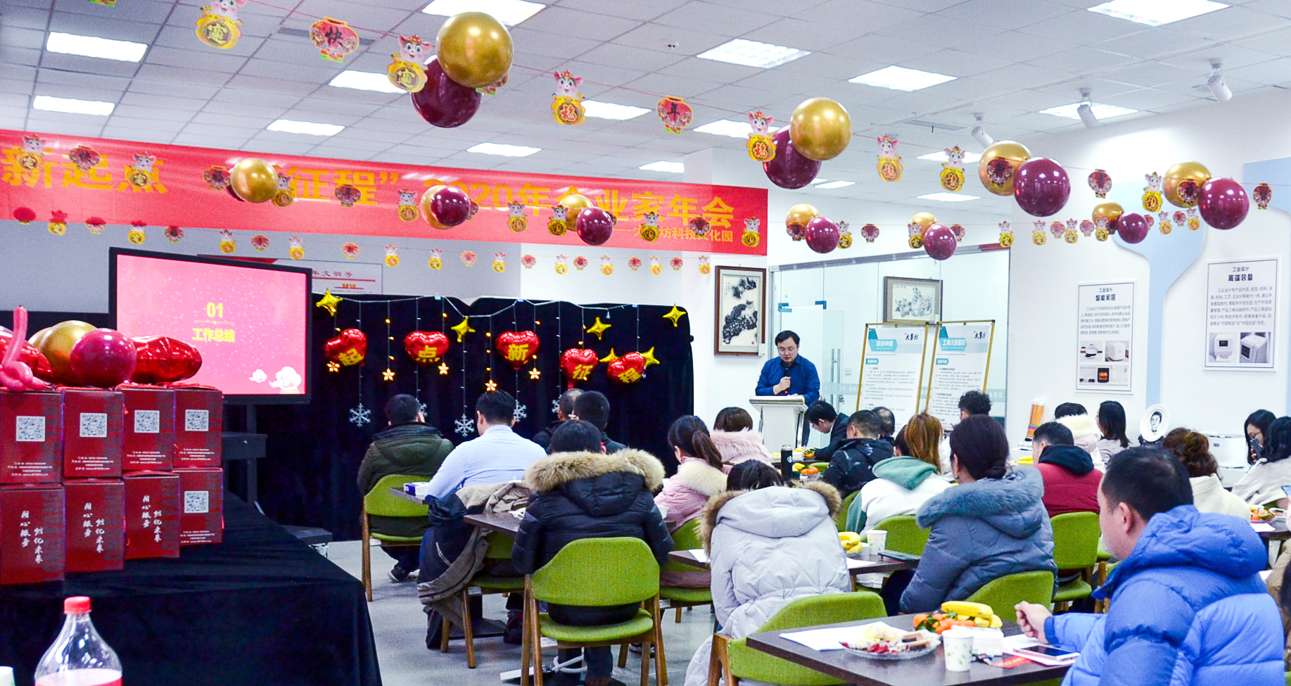 金豬跑,玉鼠跳,值此辭舊迎新之際,為總結2019年度大礱坊科技文化園工作成效,搭建園區(qū)良好的溝通平臺,進一步激勵企業(yè)家創(chuàng)業(yè)創(chuàng)新熱情,增進企業(yè)之間的合作交流,1月15日下午,“新起點·新征程”2020年企業(yè)家年會在園區(qū)順利舉行。