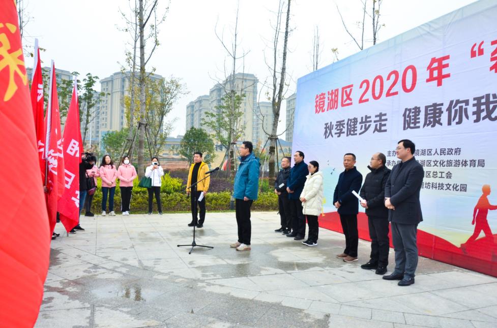 為落實(shí)鏡湖區(qū)2020年"健康鏡湖"全民健身活動(dòng)計(jì)劃,提高全民參與科學(xué)健身的意識(shí),12月3日,由鏡湖區(qū)人民政府主辦,區(qū)文化旅游體育局、區(qū)總工會(huì)承辦,大礱坊科技文化園協(xié)辦的2020年"礱坊創(chuàng)業(yè)杯"秋季健步走、健康你我他徒步活動(dòng)在汀棠公園隆重舉行。區(qū)四大班子領(lǐng)導(dǎo)靳立剛、陳娟娟、王建明、朱光友、章建華,市體育局二級(jí)調(diào)研員江思紅等市、區(qū)領(lǐng)導(dǎo),園區(qū)負(fù)責(zé)人卞國琛等出席開幕式。